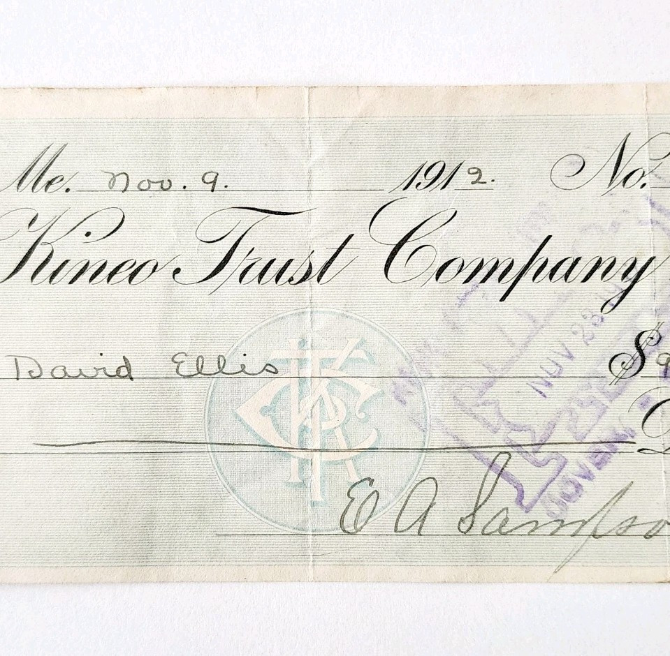 1912 Kineo Trust Company Bank Check E.A. and similar items