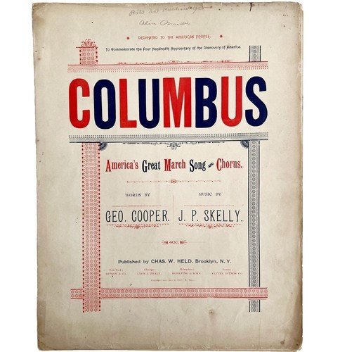 The 400 year anniversary of the discovery of America by Columbus march dedication to the American Peopkr by Geo Cooper and J.P. Skelly