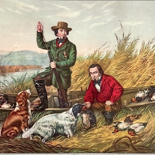 Wild Duck Shooting Hunting Dogs Lithograph 1952 Currier And Ives Art LGADCuIv