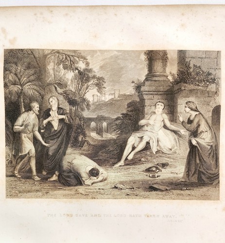 1853 Lord Giveth Taketh Away Rare Engraving Victorian Bible Art Antique DWNN23
