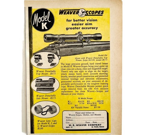 Weaver Scopes Model K4 1953 Advertisement and 45 similar items