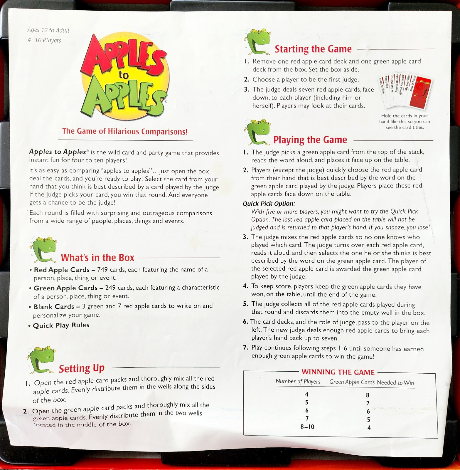 2007 Apples To Apples Mattel Party Game Complete Hilarious Comparisons GstRm
