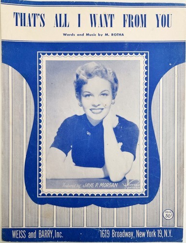 1954 That's All I Want From You Jaye Morgan Antique Sheet Music M Rotha DWNsm2