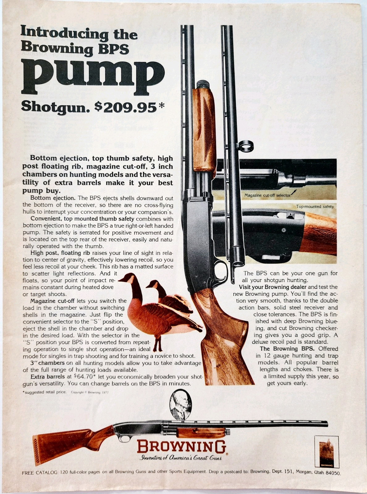1977 Browning BPS Pump Action Shotgun Advertisement Hunting Firearms DWQQ4