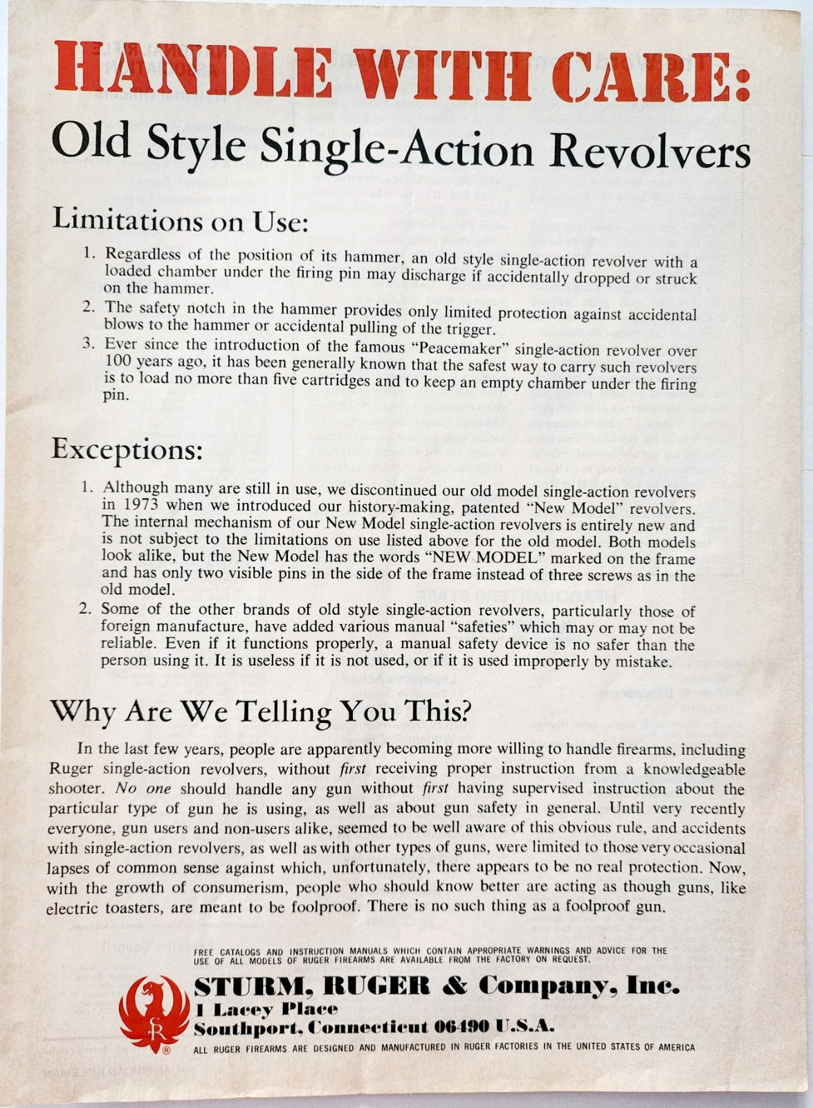 1977 Sturm Ruger Revolver Safety and 45 similar items