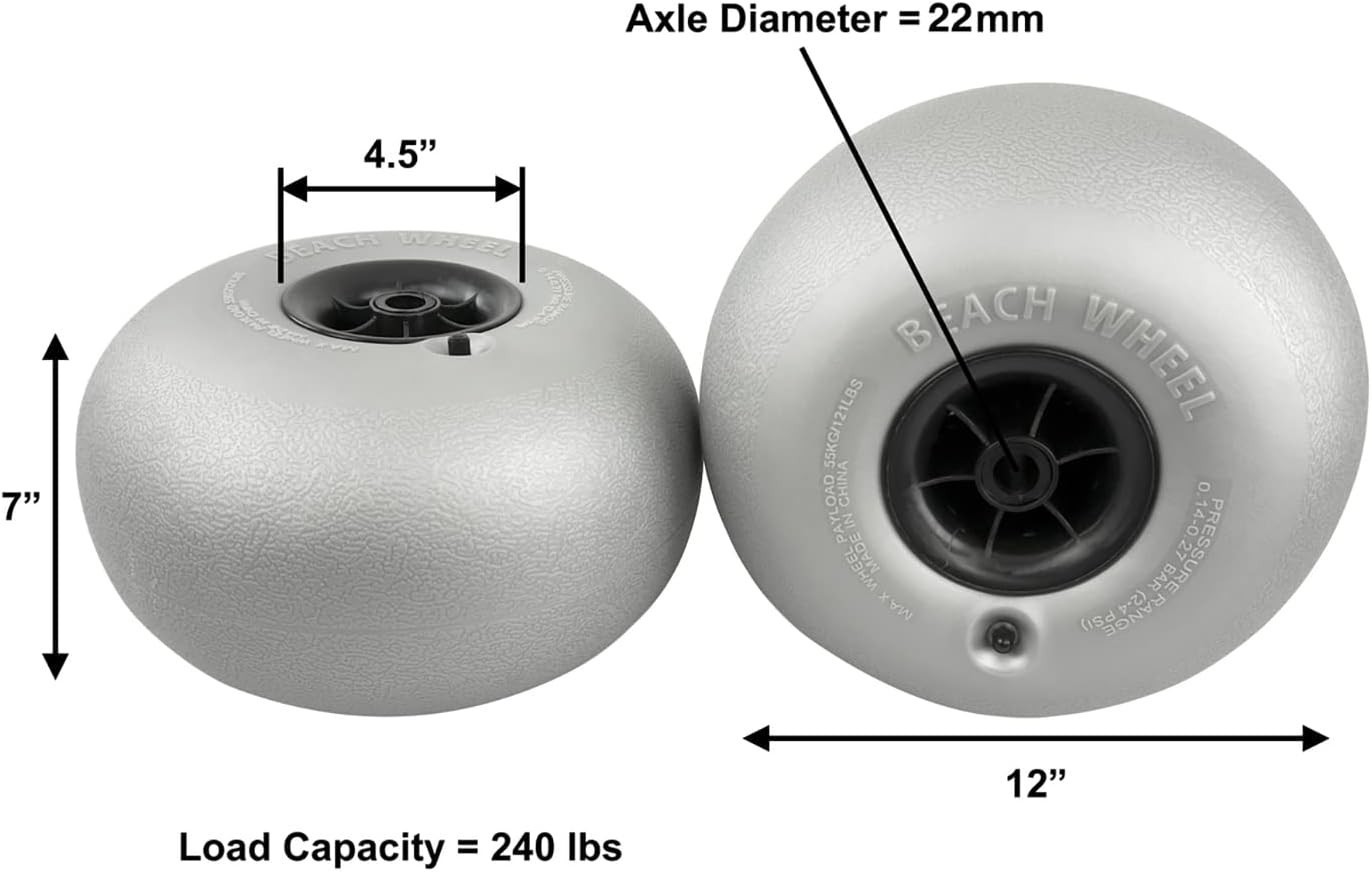 FITS 22MM AXLES: Wheel diameter of 23mm and 7" length - AXLE NOT INCLUDED - BEACH CART NOT INCLUDED
