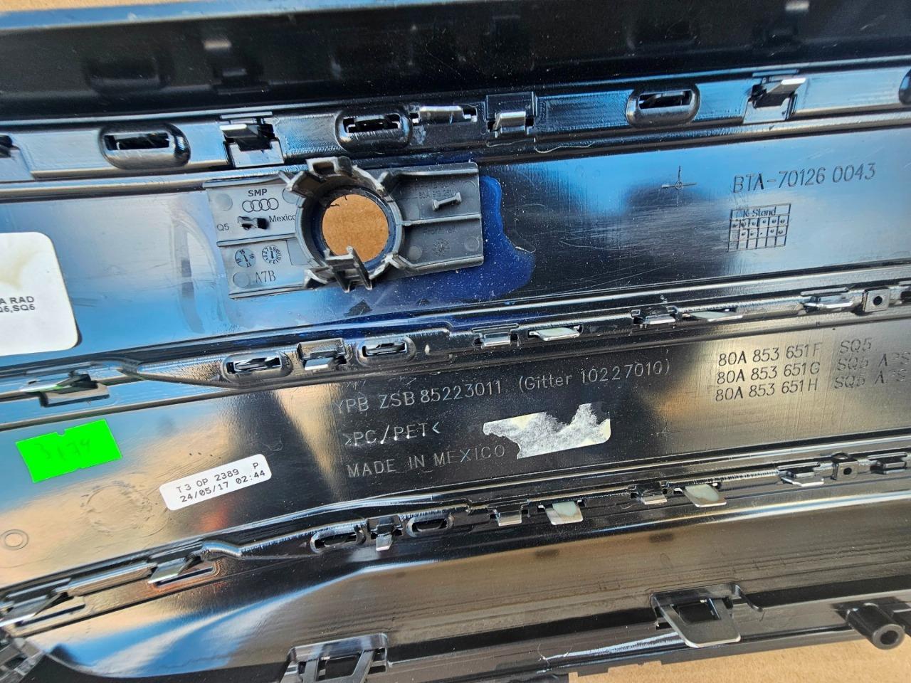 This listing is for an OEM 2018 2019 2020 Audi SQ5 S Line Front Grille Assembly with SQ5 and Audi Emblems. Satin Chrome and Gray finish