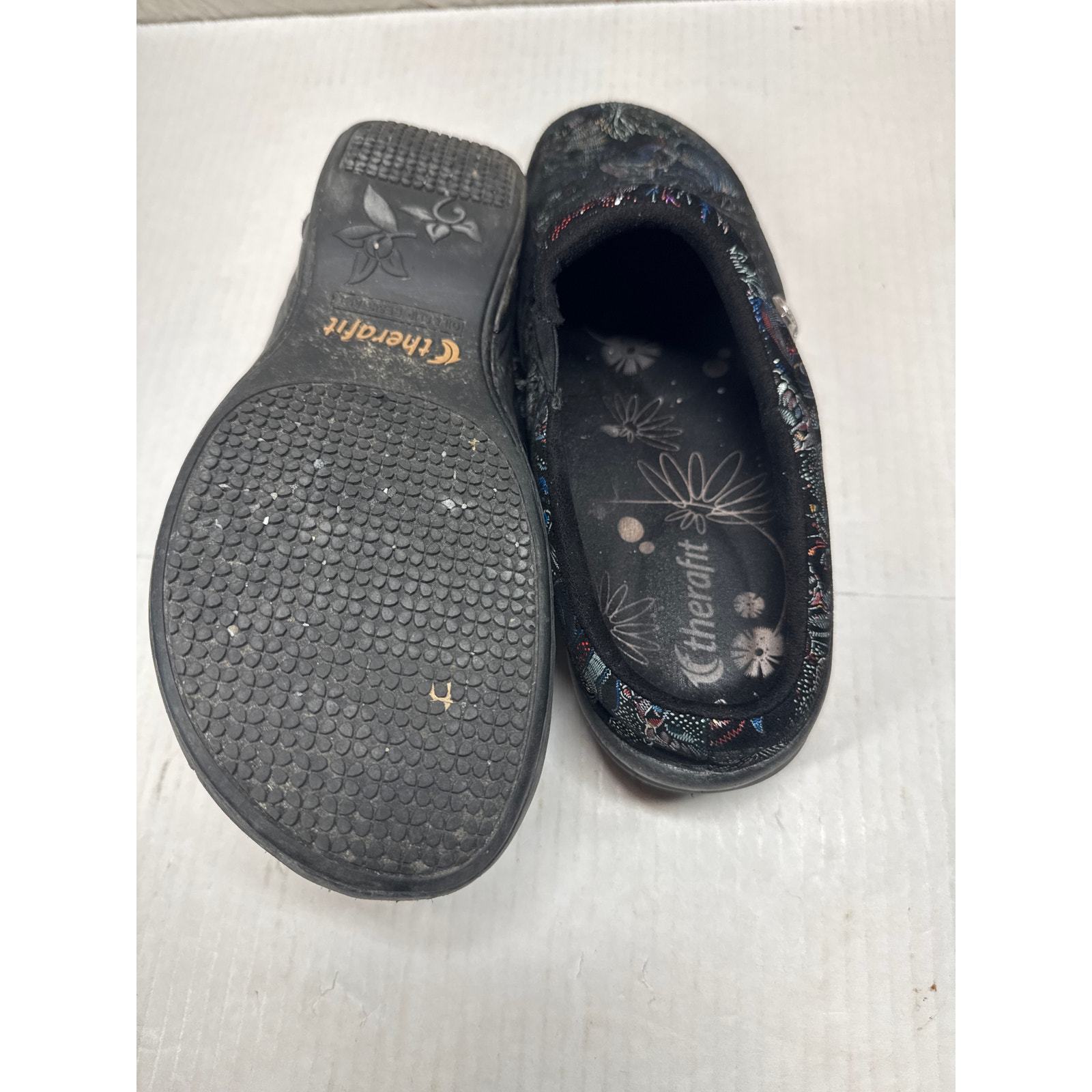 Therafit Molly Women's Suede Black Clog Paisley Colorful Size 39 US 8.5/9