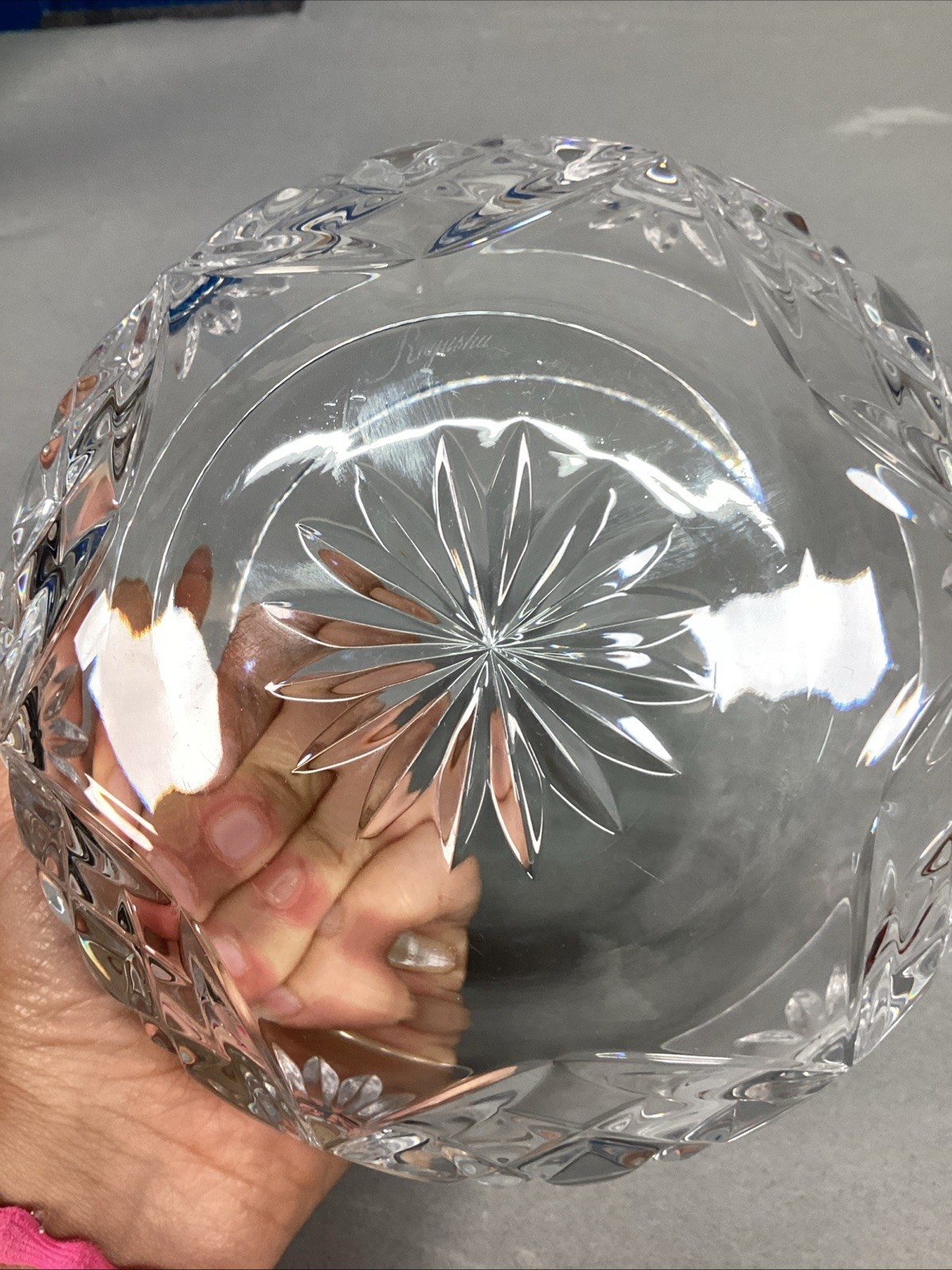 VTG ROGASKA Crystal Concave Bowl RICHMOND Pattern 5.25?Dx3.25?H - Signed. In good condition. The base of the bowl has some scratches and nicks in the glass