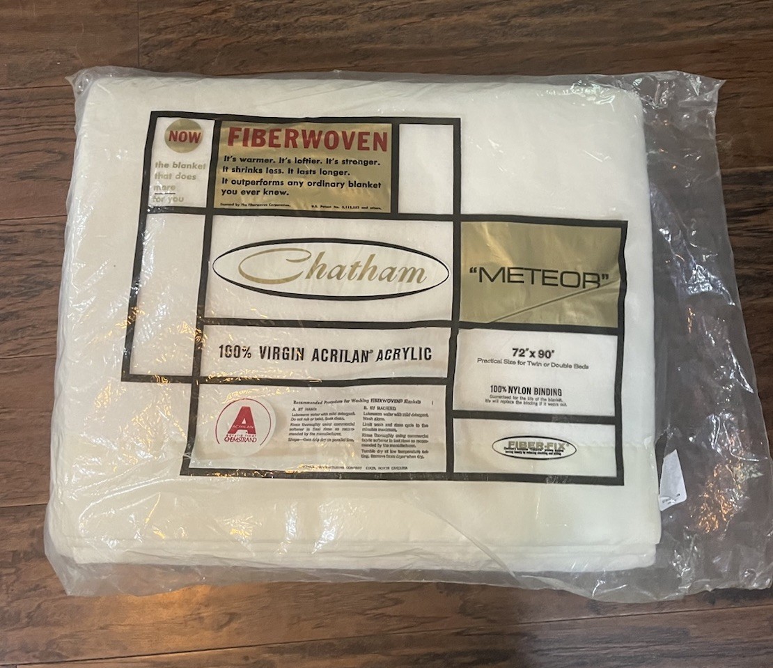 Vintage Chatham Acrylic Meteor Blanket White Full Size Satin Trim NEW
