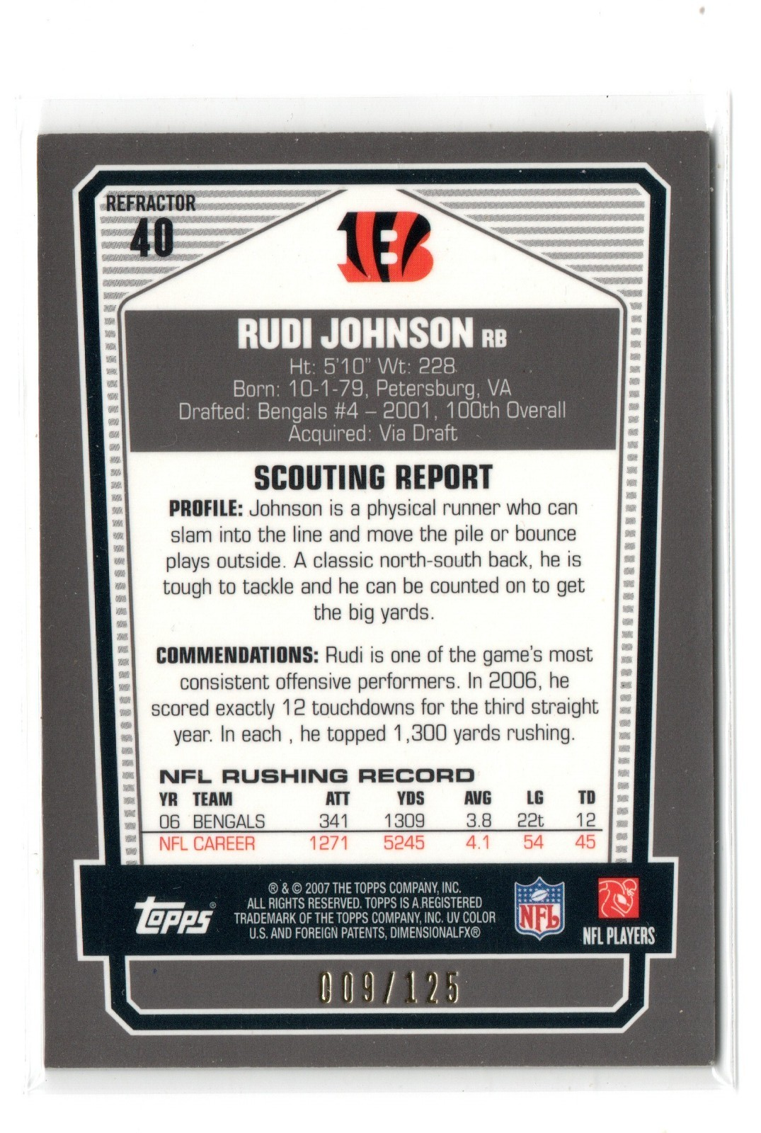 2007 Draft Picks & Prospects (DPP) Chrome Silver Refractor 9/125 Rudi Johnson NM