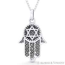Hamsa Hand & Star of David Magen Oxidized .925 Sterling Silver Necklace Pendant