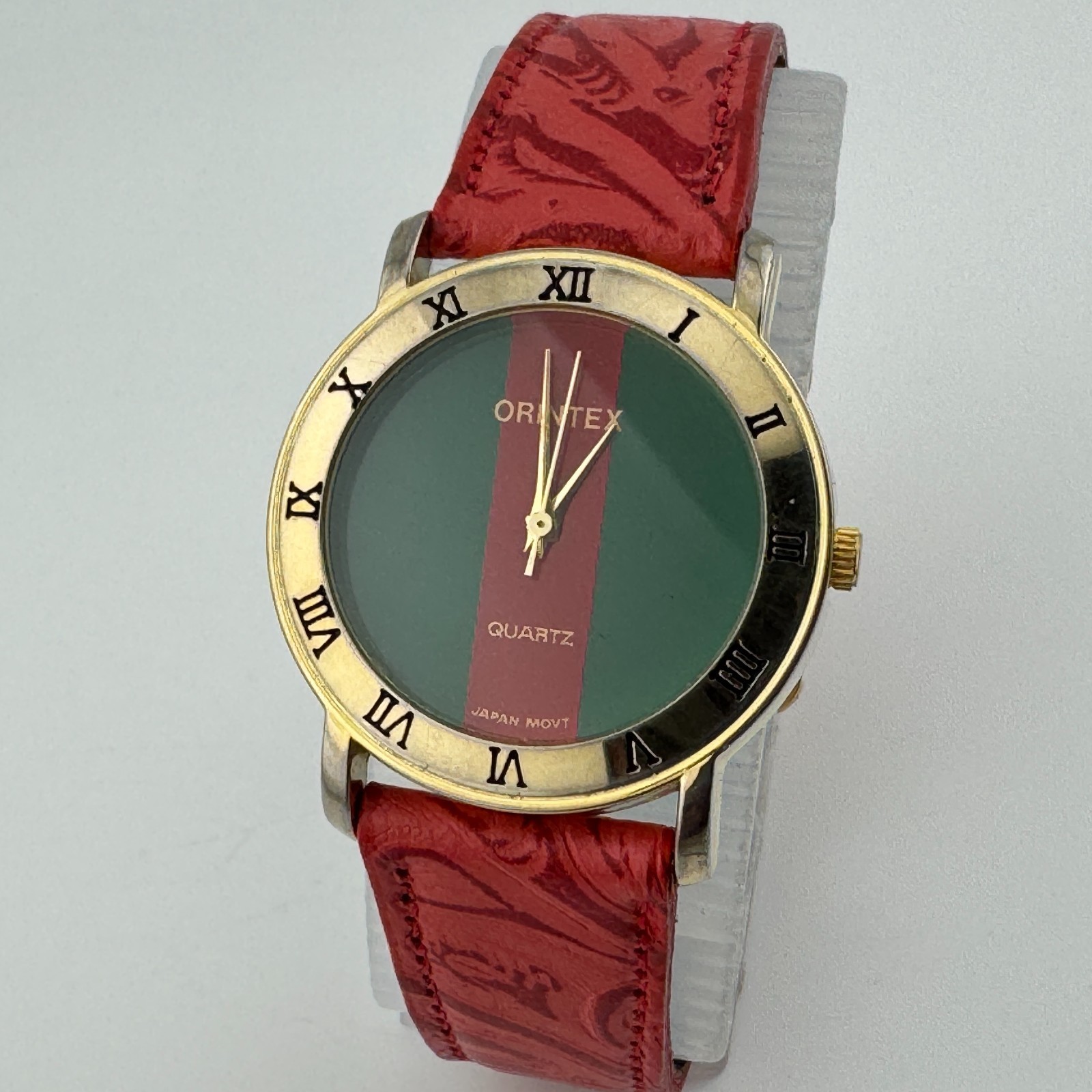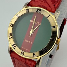 VTG Orintex Quartz Watch Unisex Gold Tone Red Leather Japan Analog New Battery