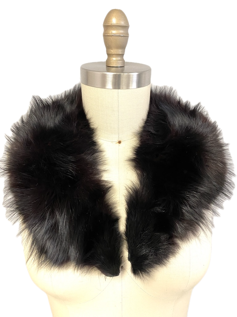 Black Vintage Fur Collar 30" x 3.5" w Fox Add to Coat or Sweater Curved