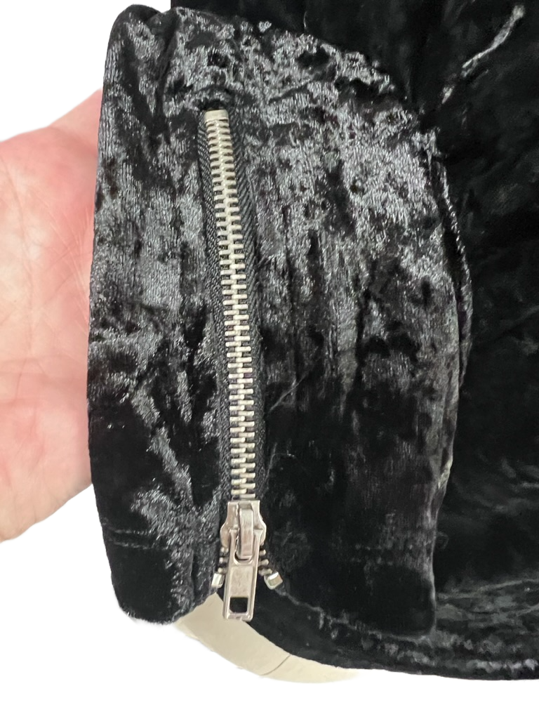 Disney Coco Womens Juniors XL Moto Jacket Black Velvet Velour Rose Embroidered