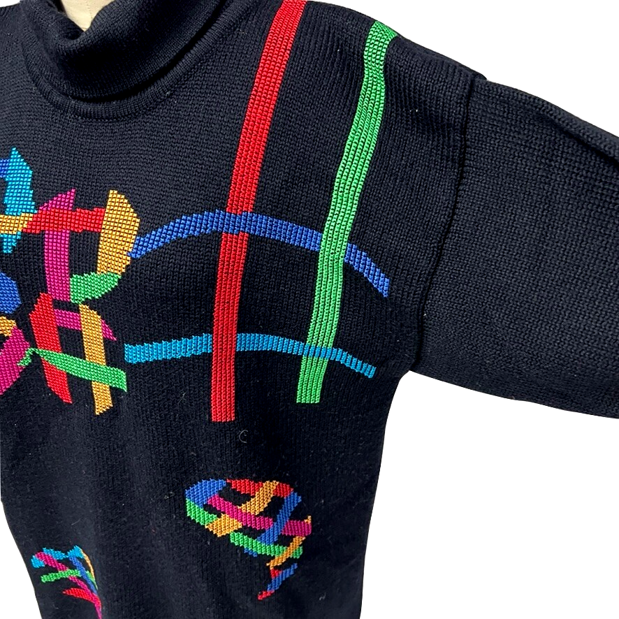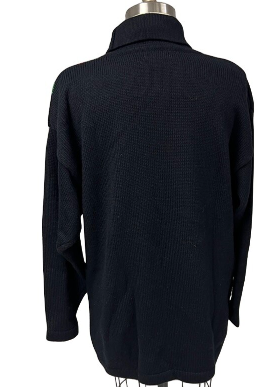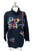 Doncaster 80s Vintage Black Cowl-Neck Sweater w/Multicolor Design Women's Size L
