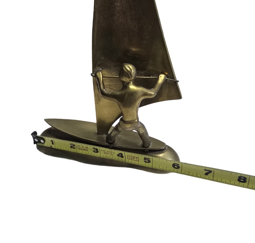 Vintage Solid Brass Windsurfer Figurine 1960s Mid Century Nautical Surf Decor