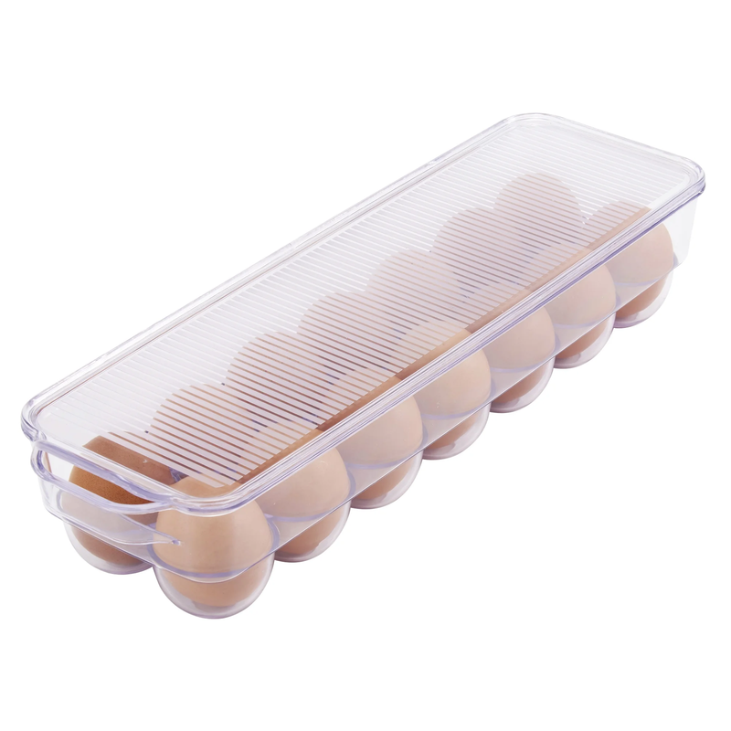 Clear Plastic Egg Holder for Refrigerator (Holds 14 Eggs)