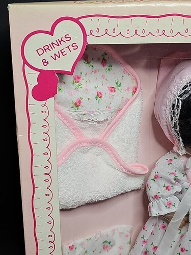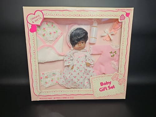 UP FOR SALE: Vintage African American Baby Doll Gift Set NIB Rooted Hair Poseable Hong Kong