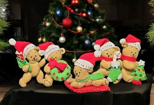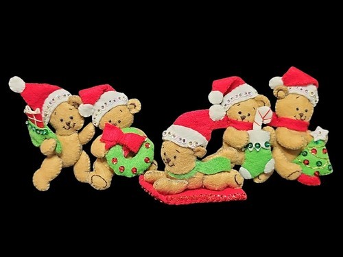 VTG Bucilla Playful Teddies 5 Felt Jeweled Sequined Christmas Ornaments 82636