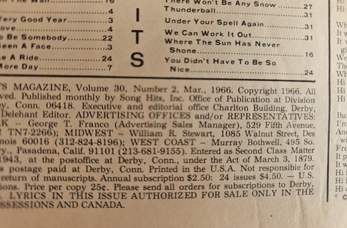 Song Hits Magazine Volume 30 No 2 March 1966 and 50 similar items