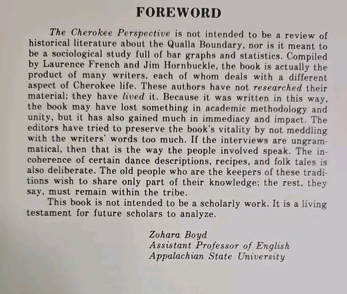 The Cherokee Perspective Edited By Laurence French & Jim Hornbuckle PB 1981