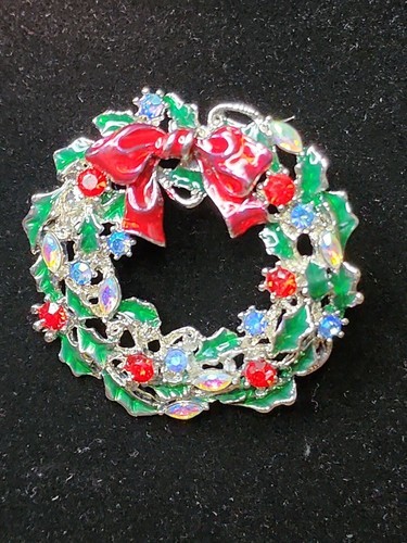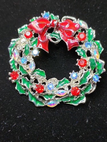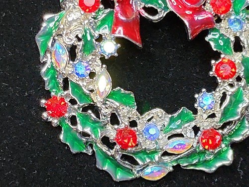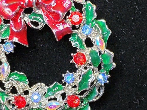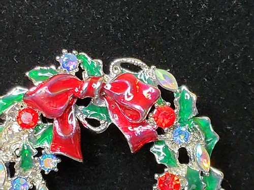 Festive Christmas Wreath Brooch Pin Red Bow and 40 similar items