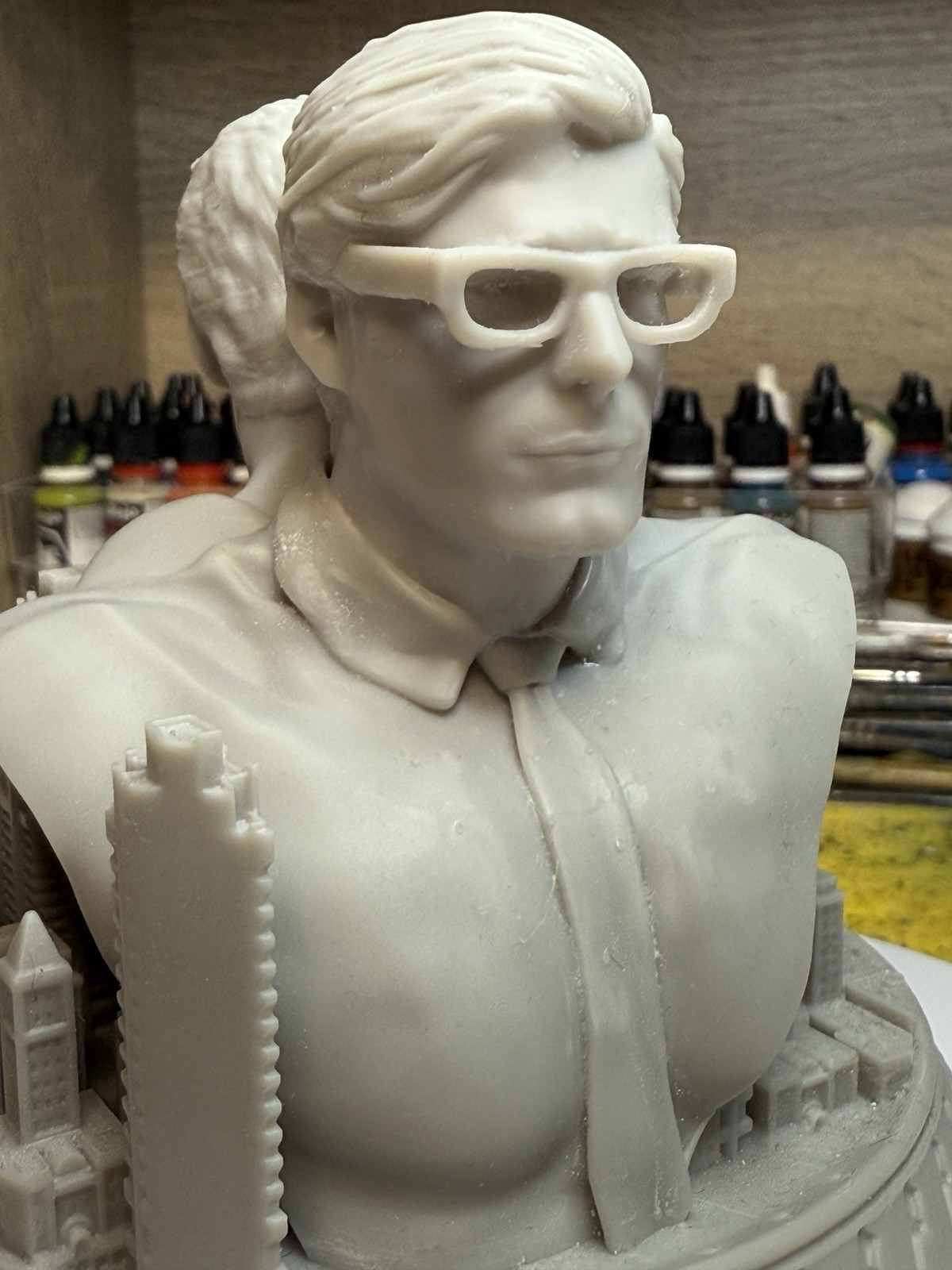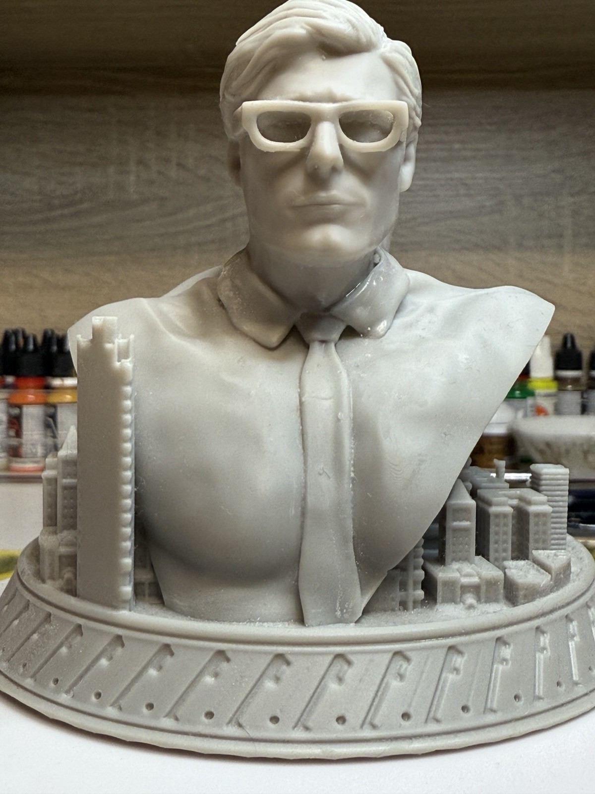 This is a hand-painted tribute bust featuring both Clark Kent and Superman, capturing the iconic dual identity of the Man of Steel. This is not an official DC product. We have no affiliation with the original creators. A collectible homage for fans of the superhero.