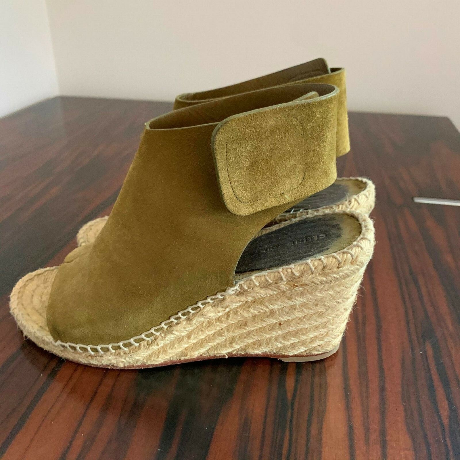 CELINE Suede Olive Green Open Toe Wedge and 46 similar items