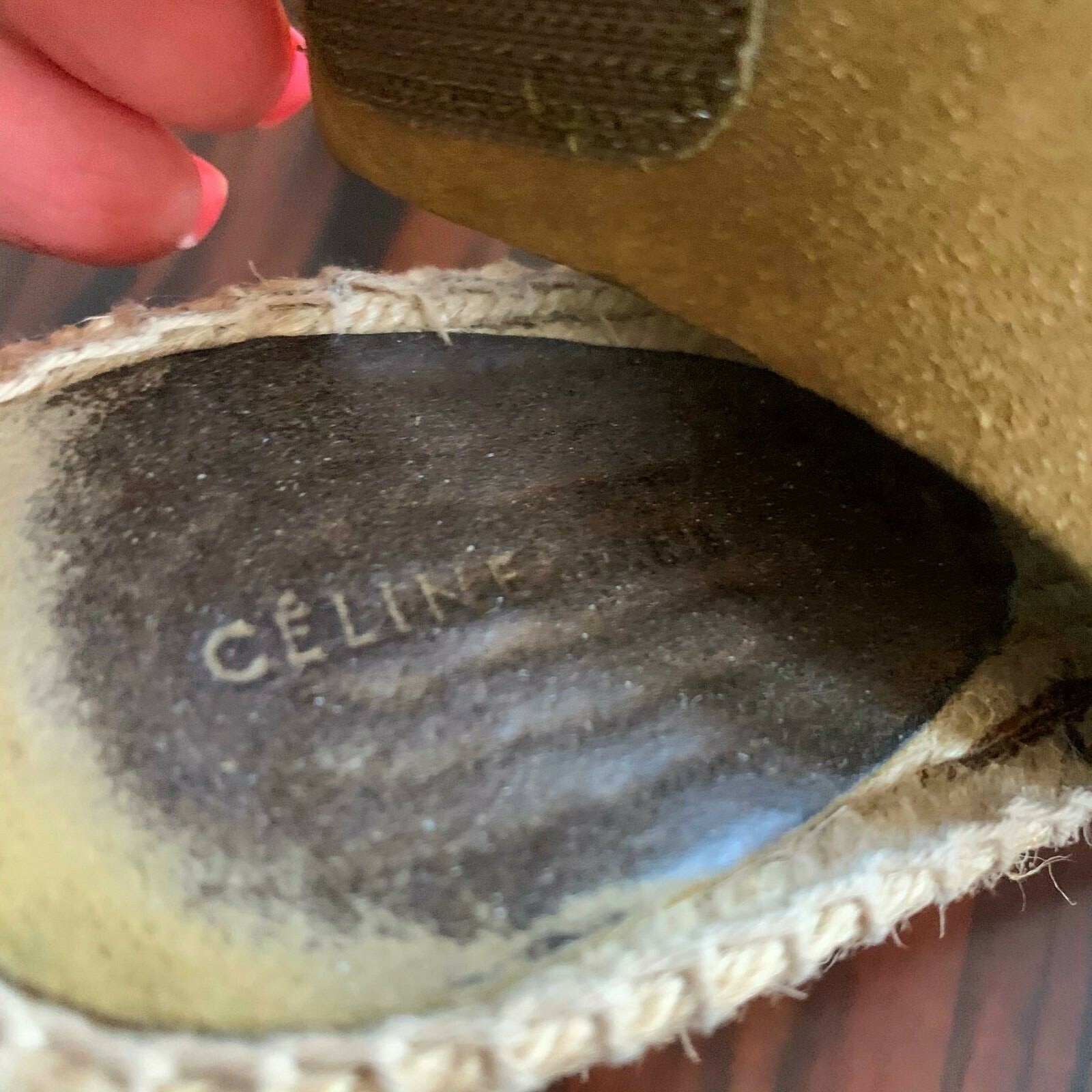 EUC CELINE Suede Olive Green Open Toe Wedge SZ 36 Made in Spain