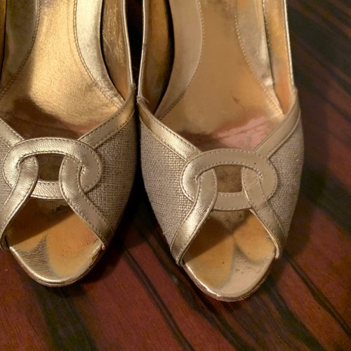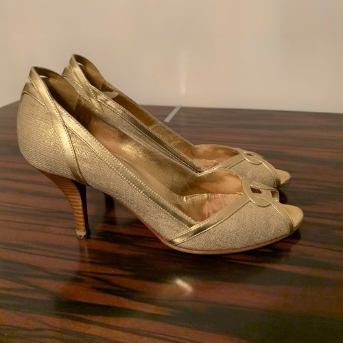 Euc Sergio Rossi Peep Toe Metallic Linen & and 46 similar items