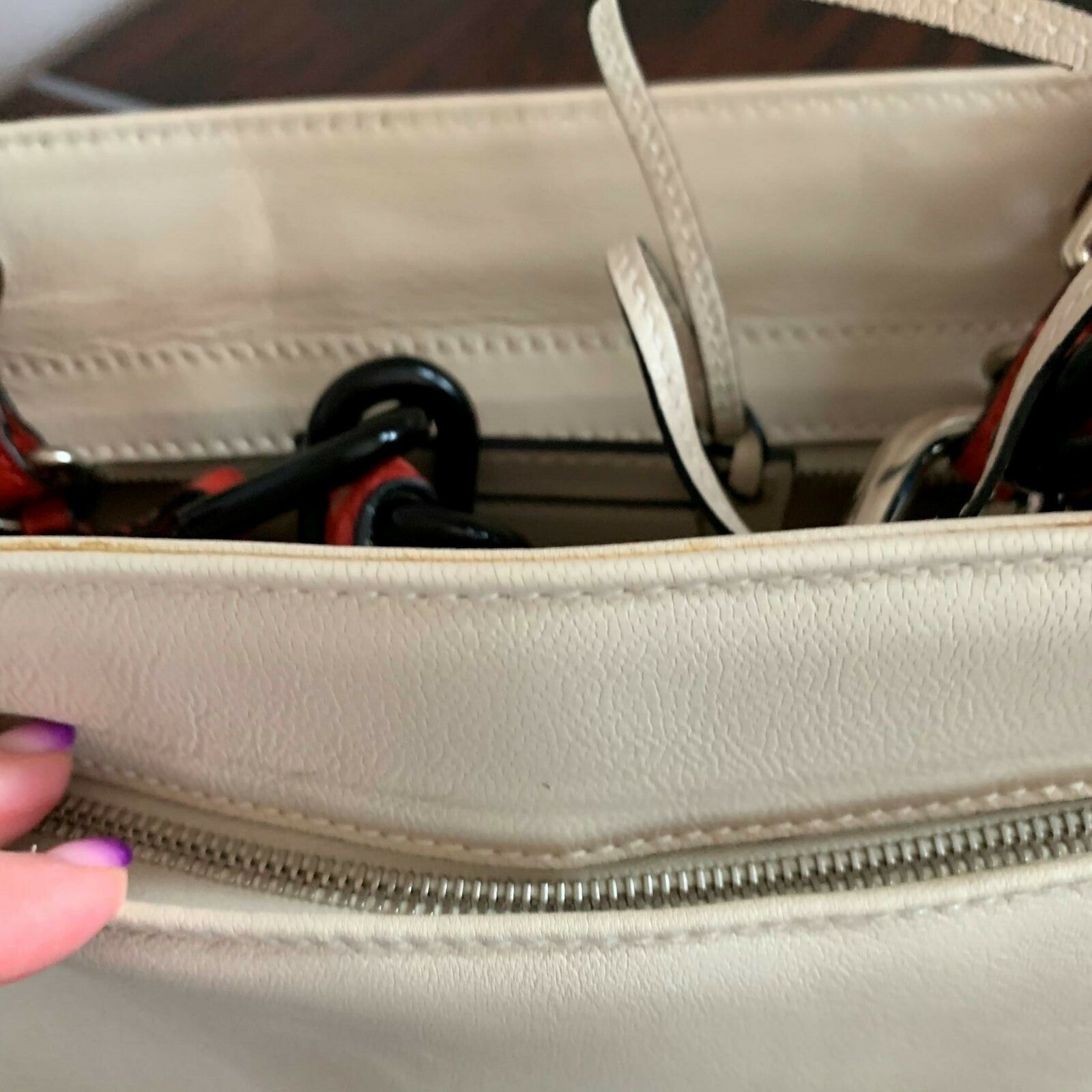 NWT BALENCIAGA Cream and Coral Leather Shoulder Bag added to cart.