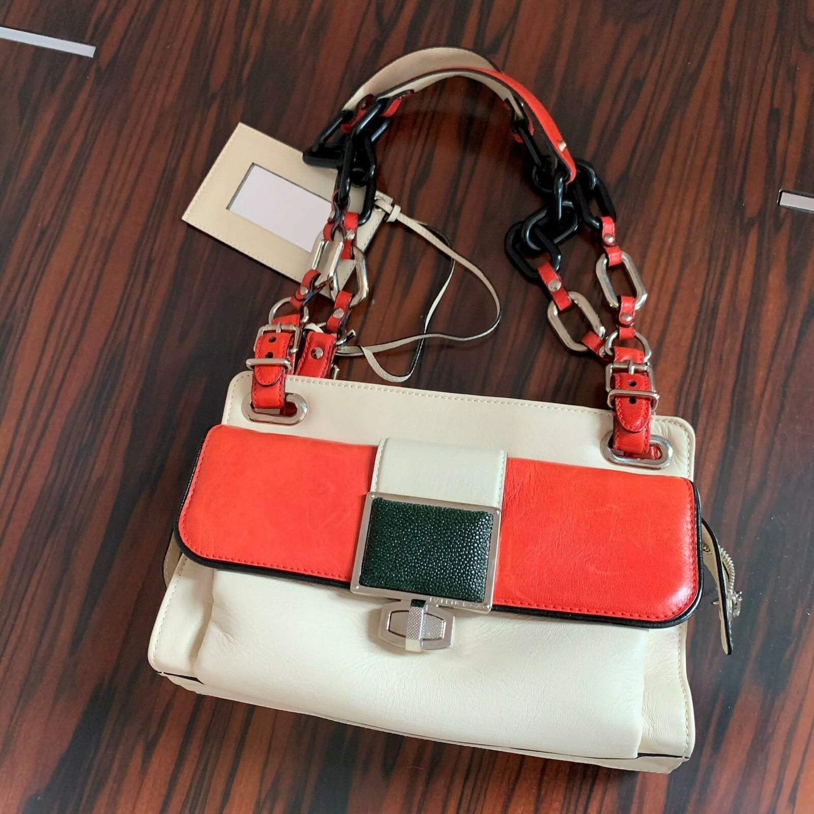 This new with tag BALENCIAGA cream and coral leather shoulder bag is in excellent condition as it has never been worn. It features: