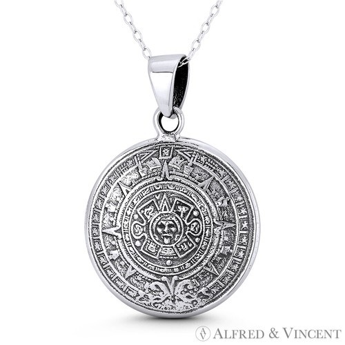 Mayan Calendar & Aztec God Tonatiuh Quarter Dome Pendant in .925 Sterling Silver