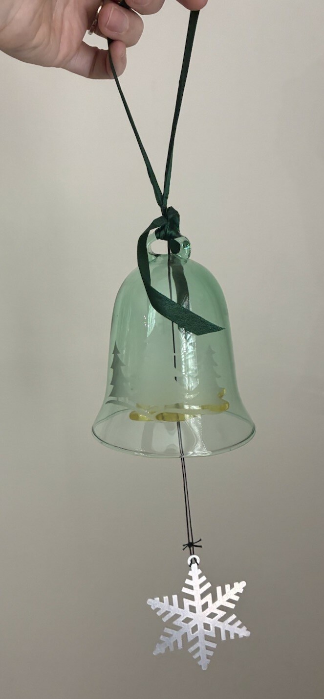 Woodstock Chimes Nordic Bell Tree Etched Green Blown Glass Evergreen Snow W/Box!