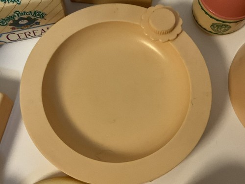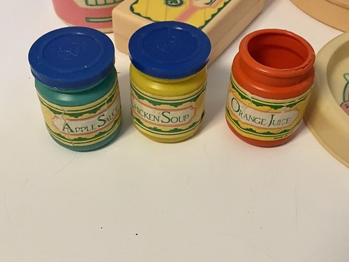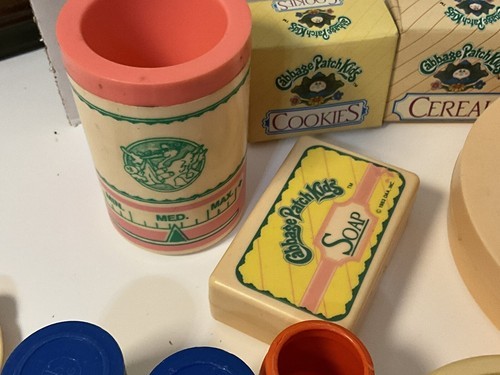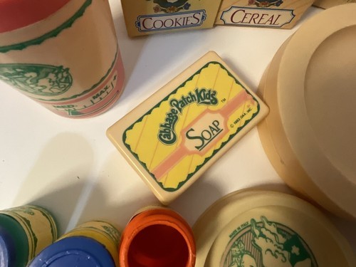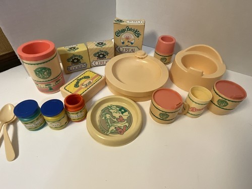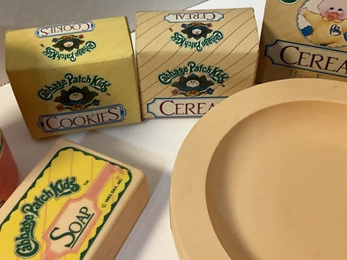 This is cute vintage lot of 17 Cabbage Patch Kids play food and bath set. It is incomplete but all in good condition and perfect for play or decor. Please see pictures for condition and types of accessories in this lot.