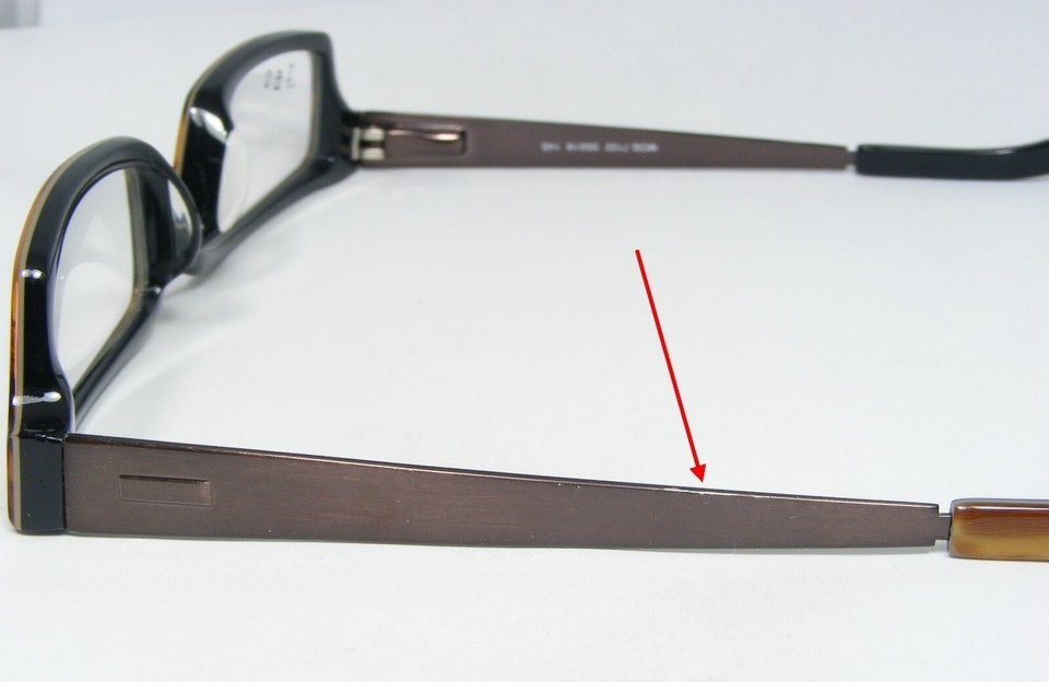 NOTES: new eyeglasses but have a tiny scratch on the right arm (from the bottom) and therefore the cost is reduced. Please look the photos.