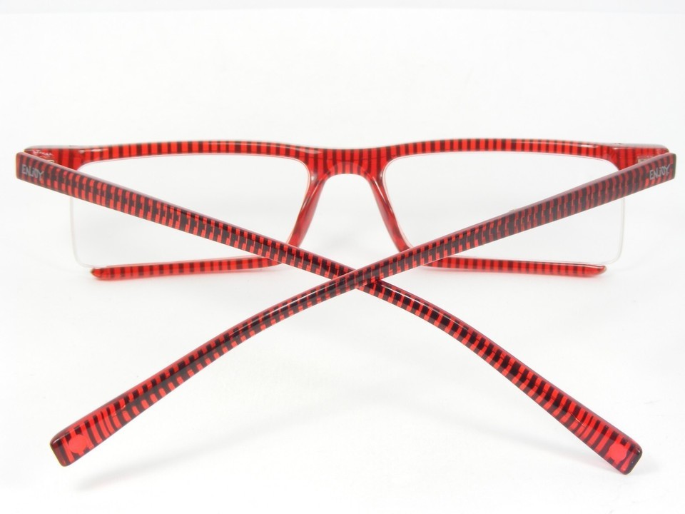 ENjOY E 6015 RED /BLACK STRIPS EYEGLASSES GLASSES PLASTIC FRAME 6015 49-15-140mm. (G416) Includes: Non-Branded hard case, cloth pouch bag and cleaning cloth. Actual photos of these glasses. This is exactly what you will receive. Style and comfort in everyday use. A pair of glasses is not just an accessory; it provides the first hint of an individual?s personality. The wearer must enjoy a frame and feel that it is completely consistent with his or her look and mindset. A great pair of glasses, with all its detail and complexity must above all be an extension of the individual. Returns are always FREE for any reason. If you don't like it, simply click "Item no longer needed". Item should be returned within 60 days as UNUSED in original packaging. If you have any questions please feel free