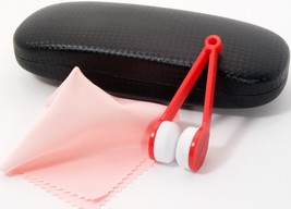 Hard Clam Shell Eyeglasses Glasses Black Case w/ Red Cleaning Cloth & Brush