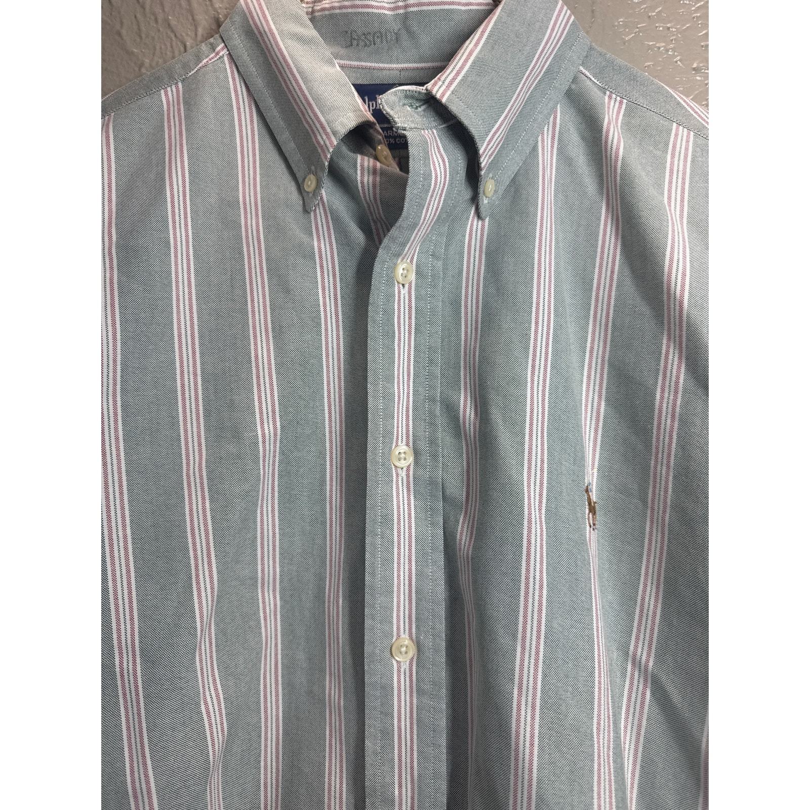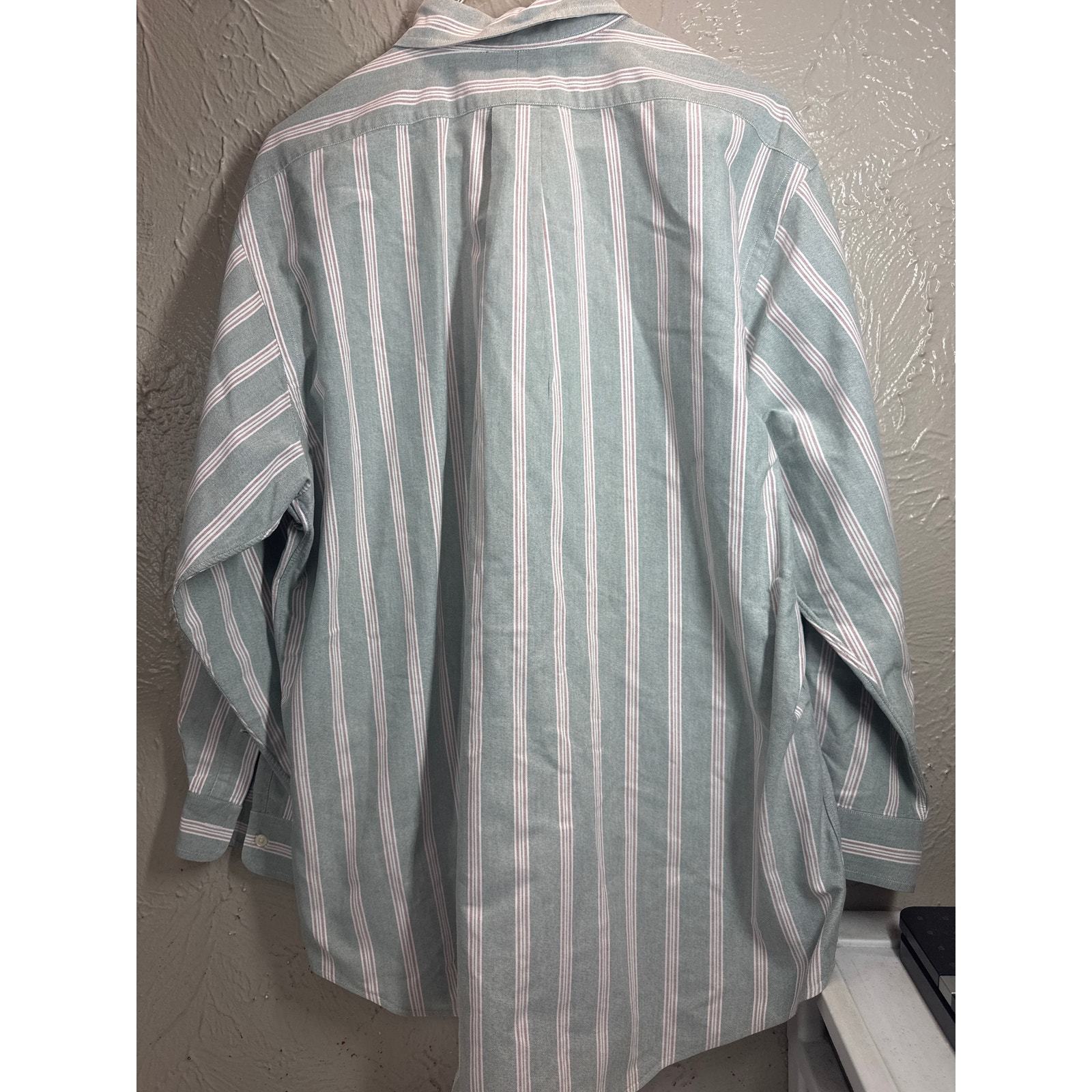 Ralph Lauren Mens Green White Yarmouth Button Down Dress Shirt Preppy Size 16 32