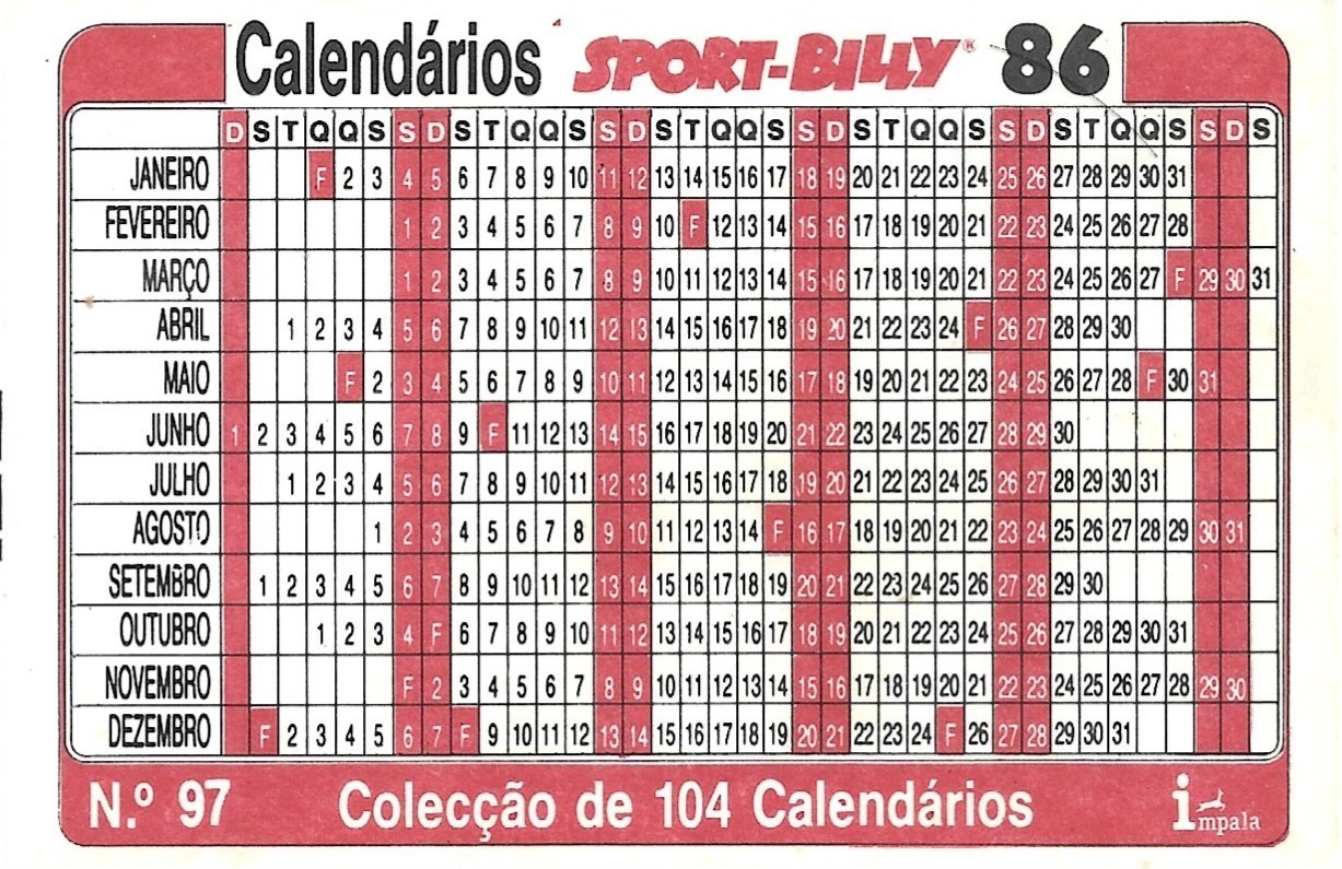 ⭕vtg pocket calendar SPORT-BILLY 1987 MEXICO 86 N.º97 WILLY