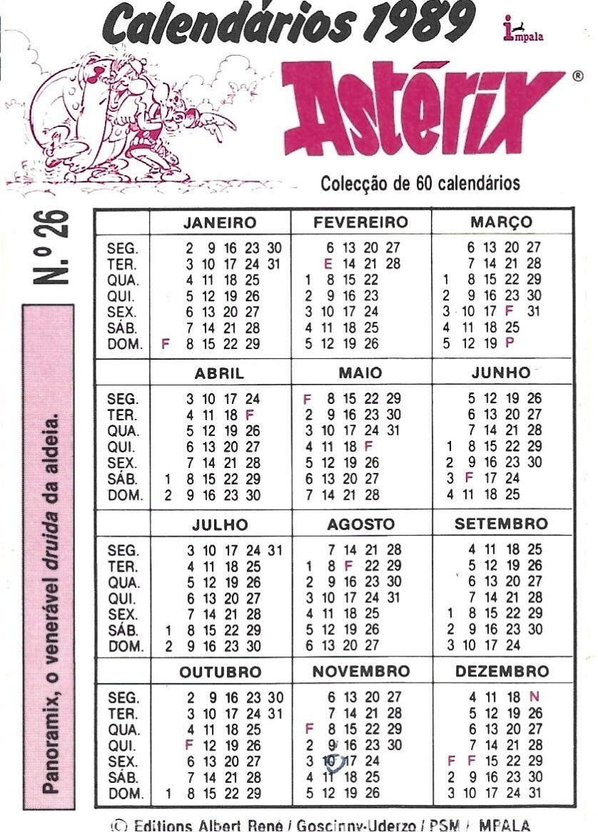 ⭕vtg, pocket calendar 1989 Comic Asterix Obelix Astérix 26 impala
