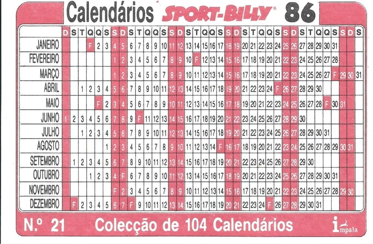⭕vtg pocket calendar SPORT-BILLY 1986 MEXICO 86 N.º21 GOLF