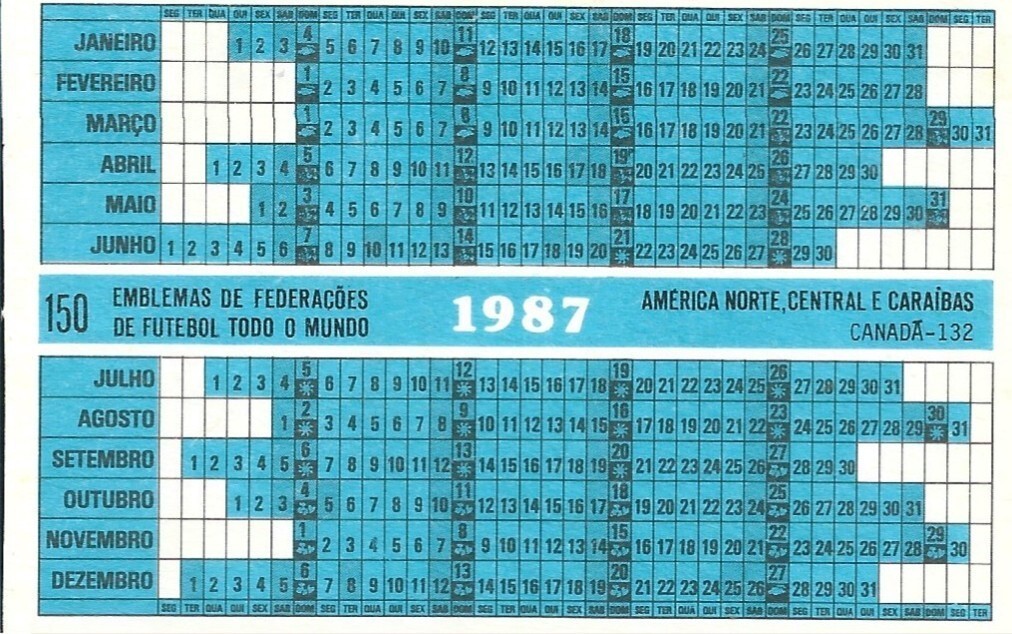 ⭕VTG card pocket calendar 1987 FOOTBALL FEDERATIONS EMBLEMS CANADA N132