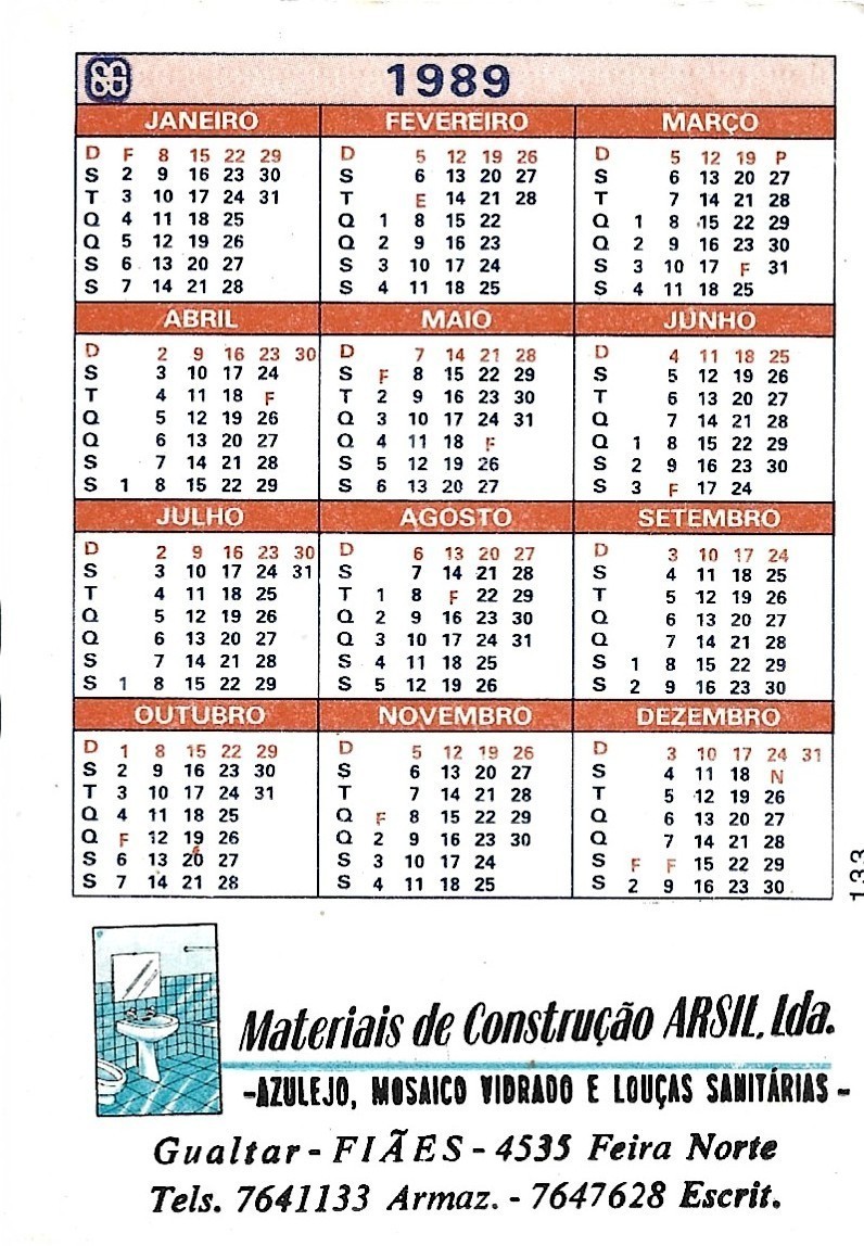 ⭕⭕ Vtg Portugal Pocket Calendar - Year 1989 and 45 similar items