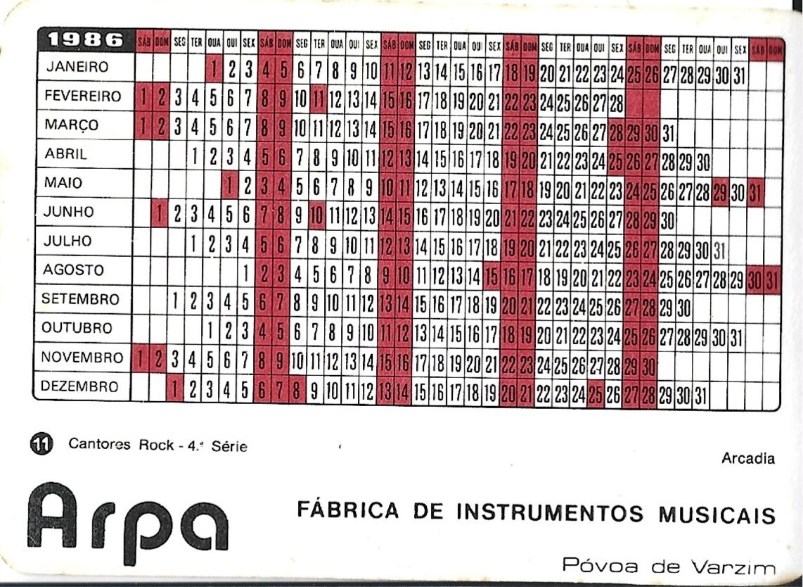 ⭕VTG card pocket calendar 1986 ARCADIA Portugal group music singer