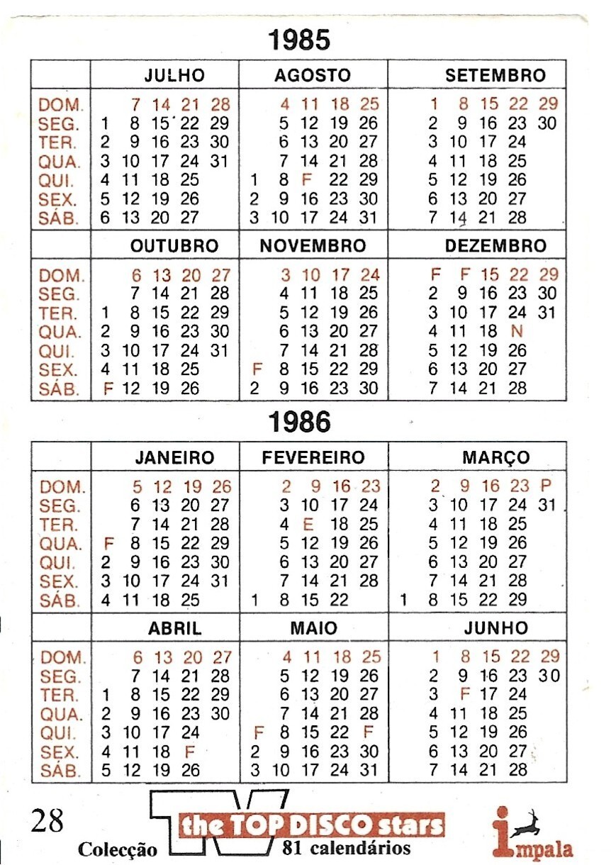 ⭕VTG card pocket calendar 1985 VIDEO KIDS Portugal group music singer