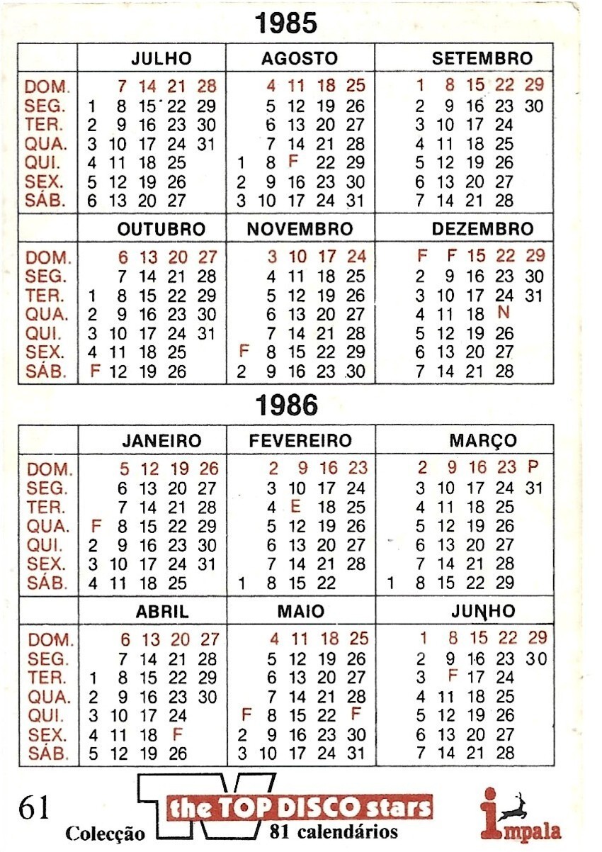 ⭕VTG card pocket calendar 1985 CINDY LAUPER Portugal group music singer