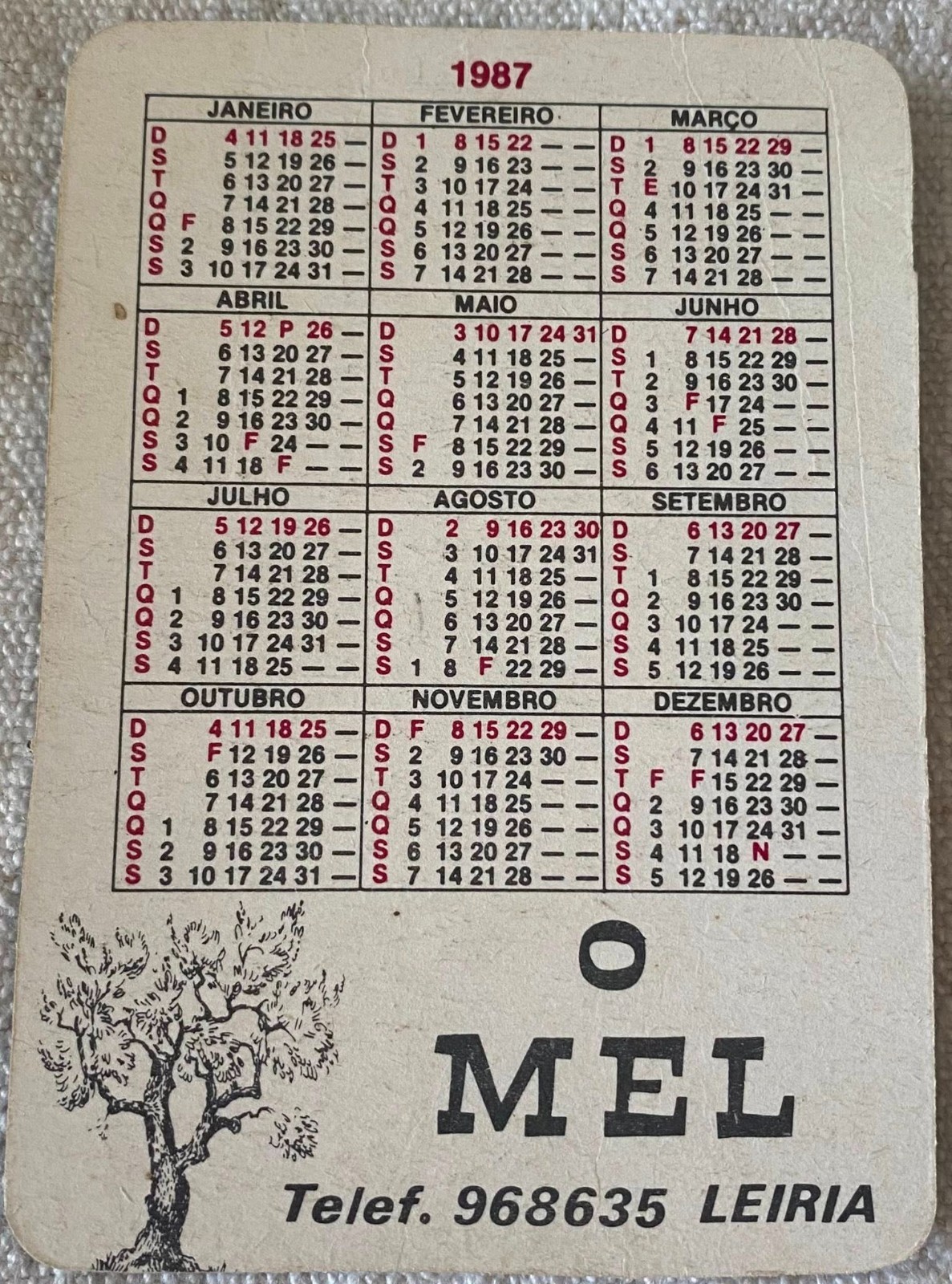 Pocket calendar used em estado excelente (sem manchas, sem dobras):