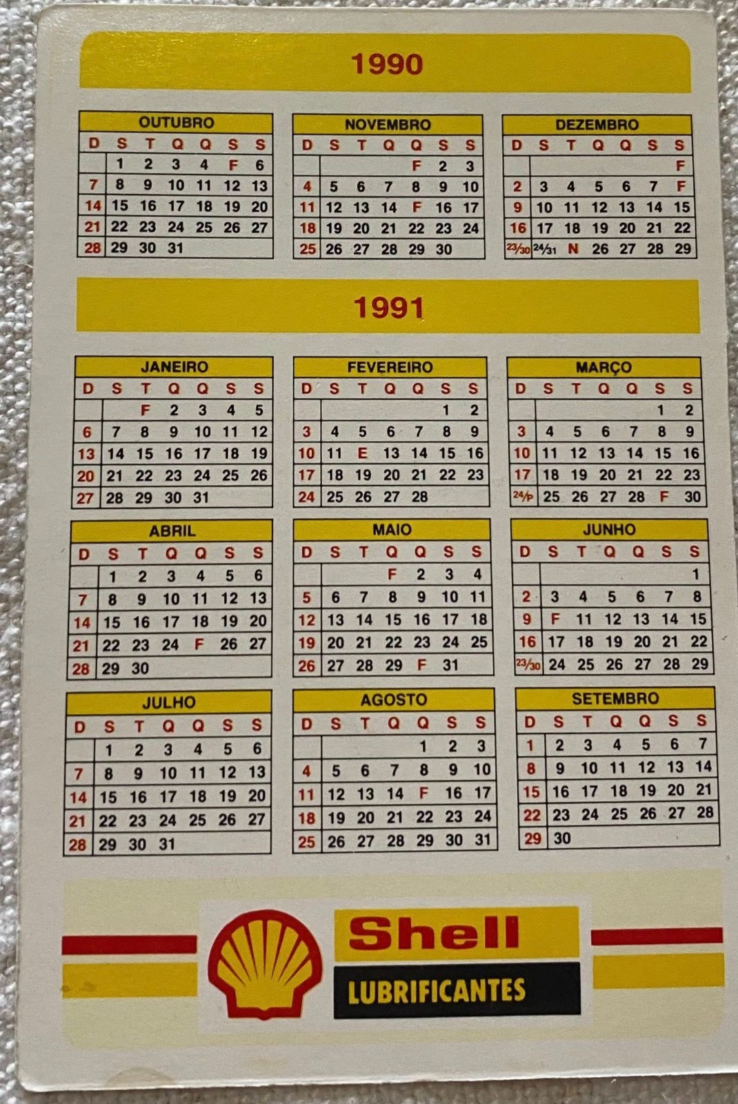 ⭕VTG, card pocket calendar 1990/91 SEAT MARBELLA SHELL Portugal advertising